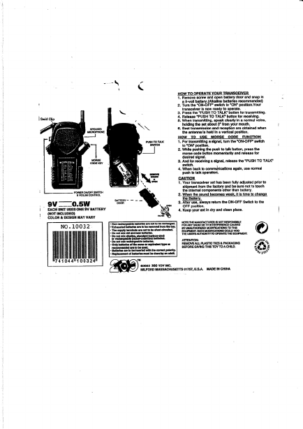 200 Toy 10032 49 MHz Walkie-Talkie Transmitter User Manual users manual