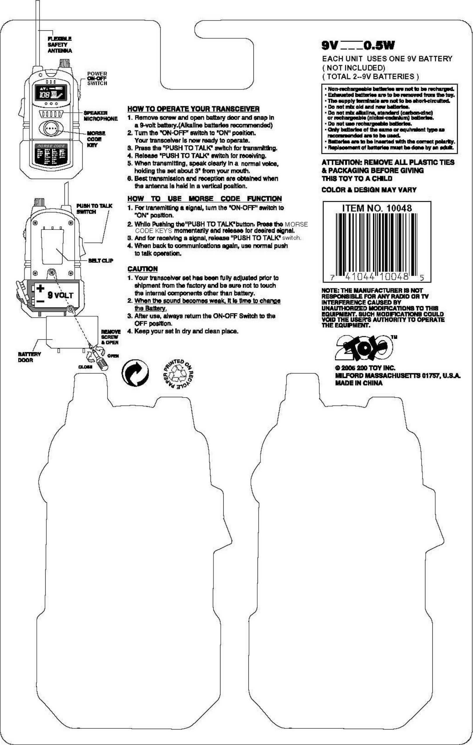 200 Toy 10048 49MHz WALKIE TALKIE User Manual USERS MANUAL