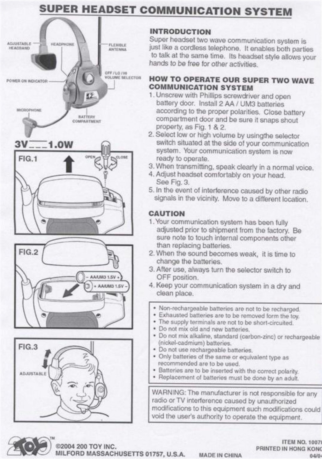 200 Toy 10078 Homodyne Walkie Talkie - TX User Manual