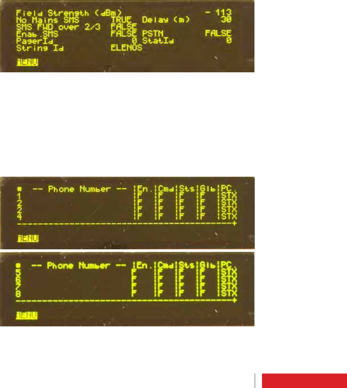 The GSM signal field intensity can be monitored.