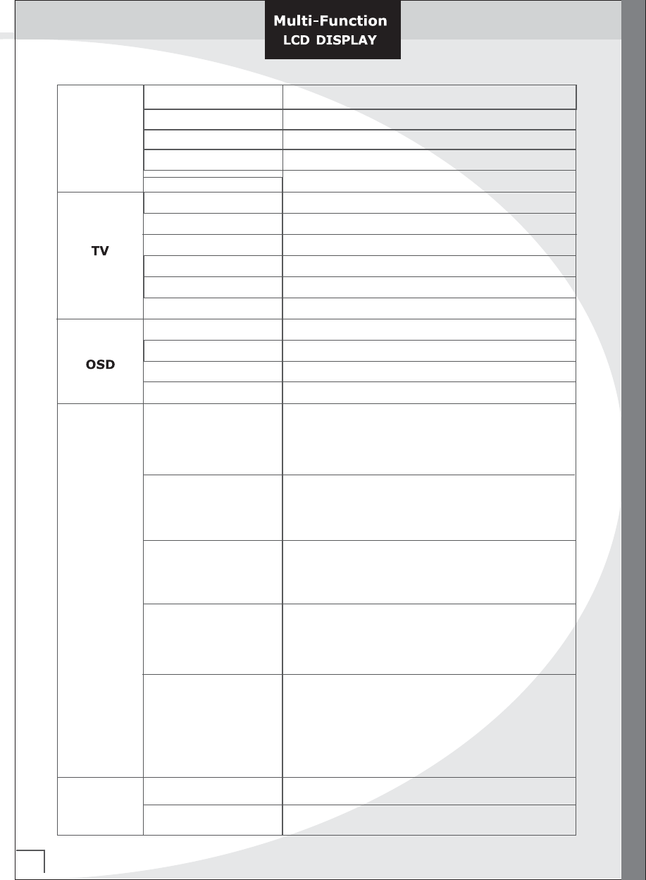 On- Screen Display Menus PC Display Closed Caption ViChip