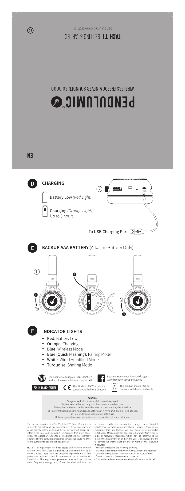 3IOS TACHT1 Bluetooth Headset User Manual PENDULUMICTachT1 QuickGuide EN OL
