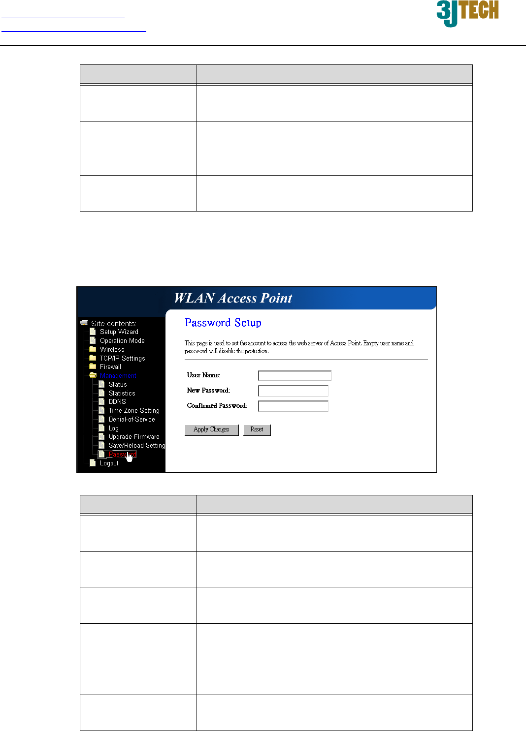 This page is used to set the account to access the web server of Access Point. Empty user name