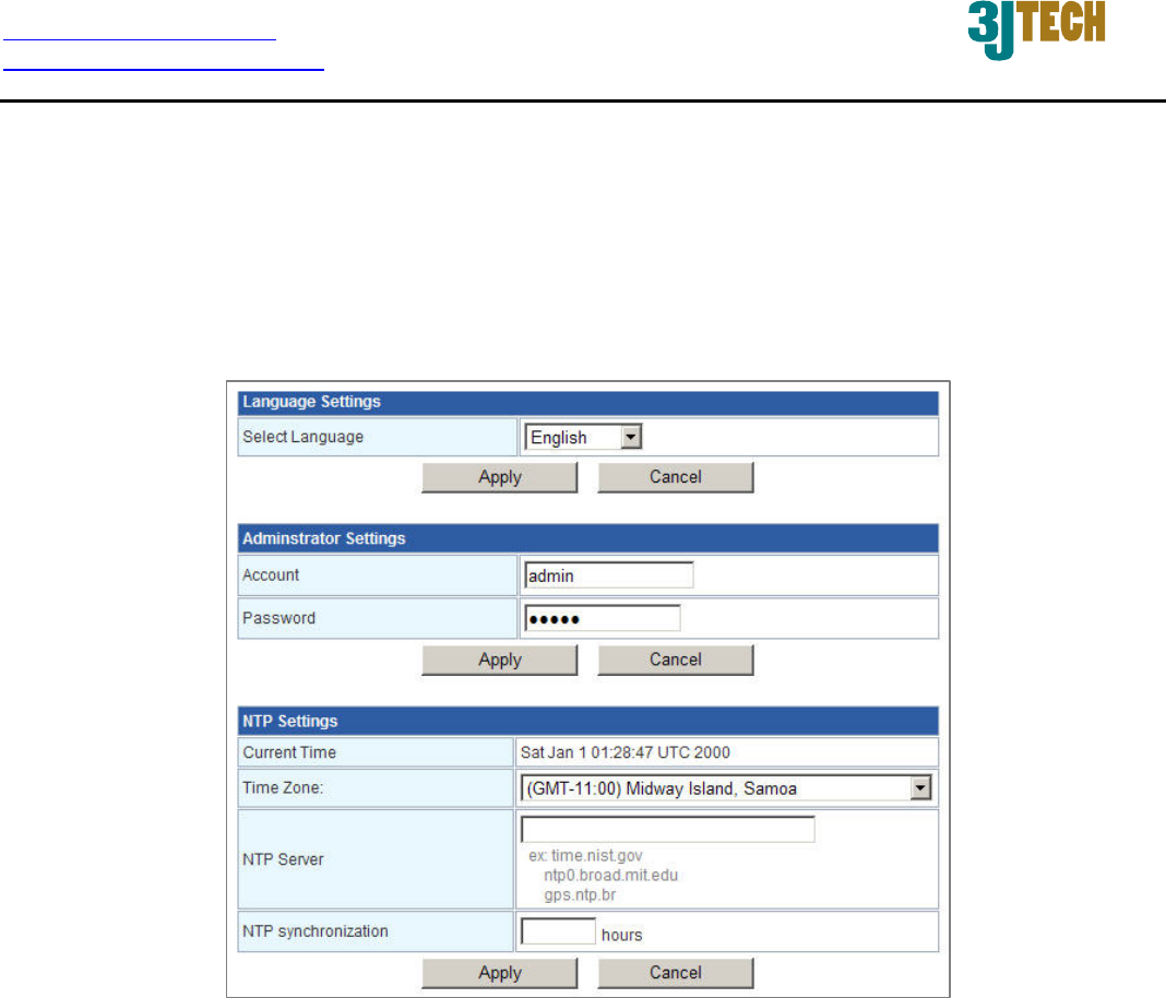Administrator Settings: Modify the account and password to set up and manage the G2wifiIII.