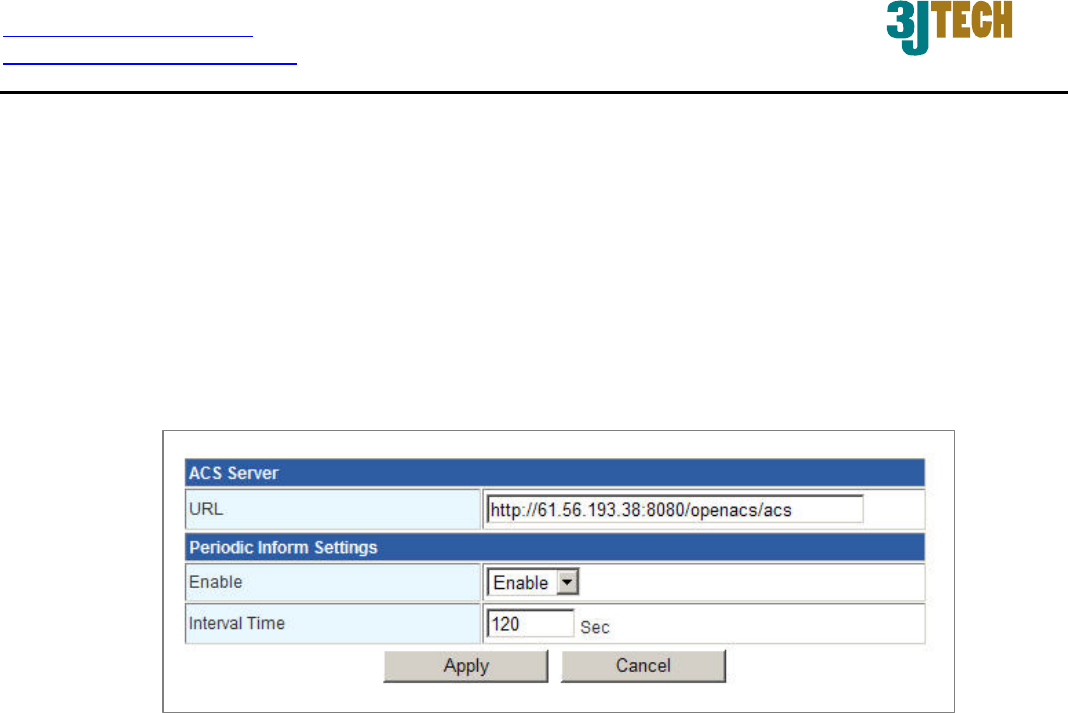 URL of ACS Server: For G2wifiIII’s access of TR-069 service from ACS through the web