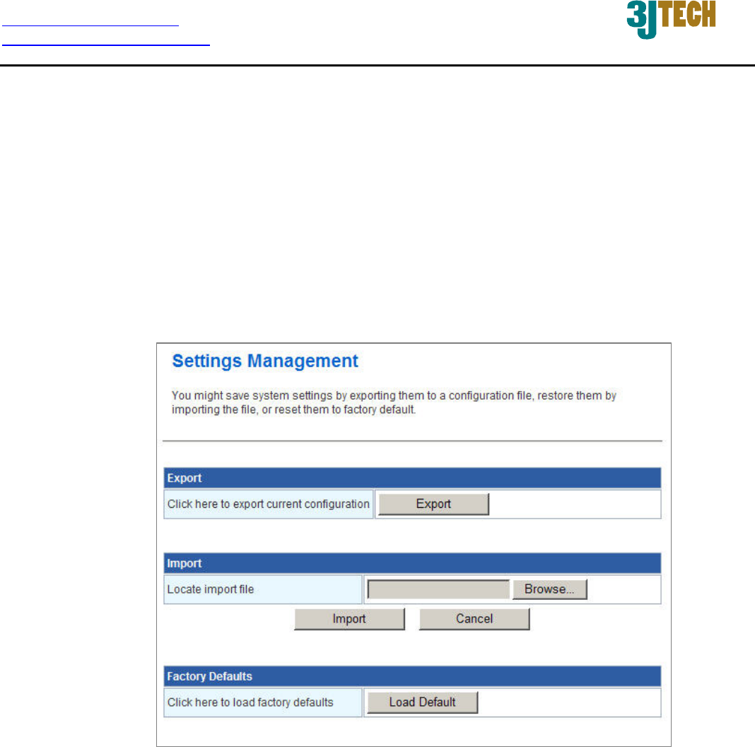 With this function, user can back up or reload the config files by exporting/ importing settings.