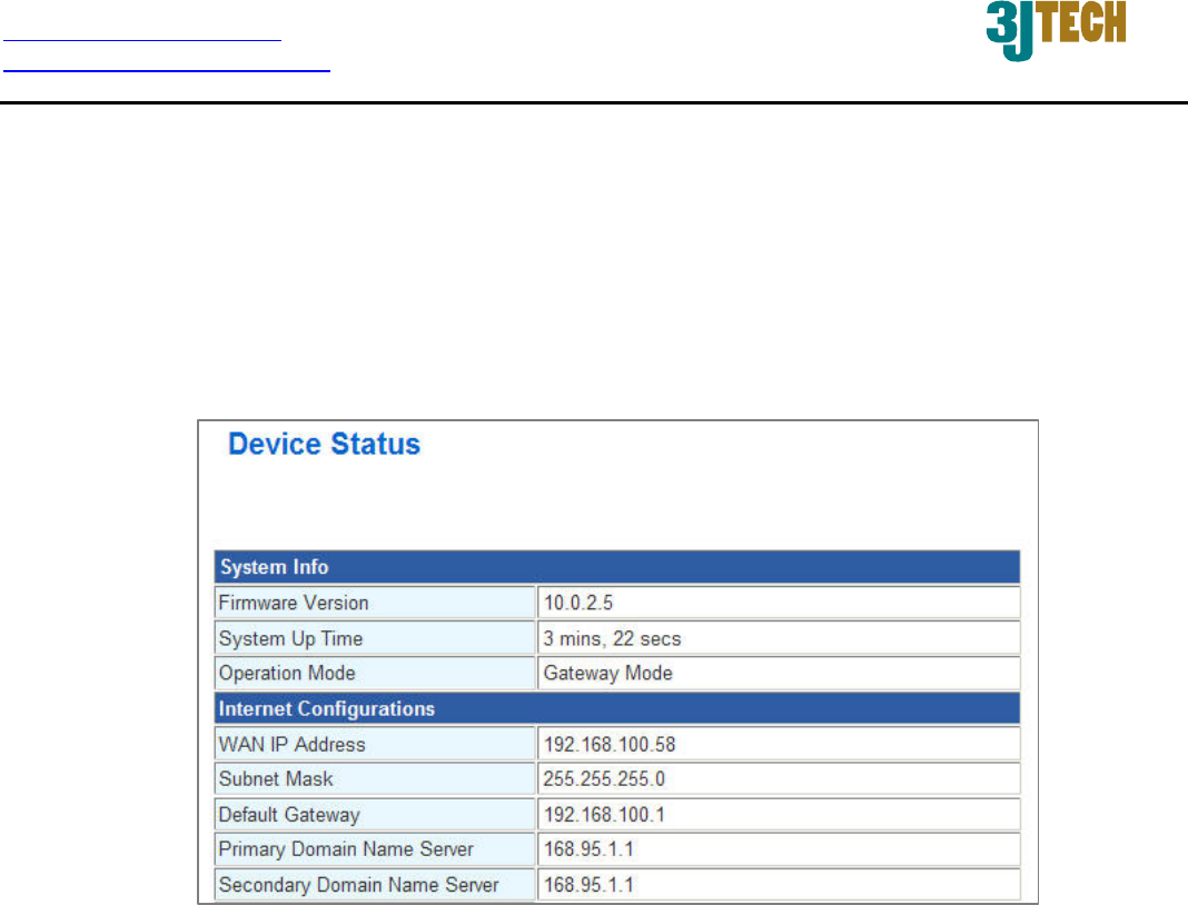 including the firmware version, system up time, WAN/Local IP address, MAC address and so on.