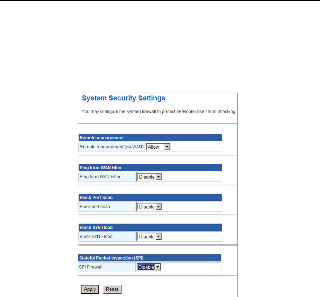 security settings, you can protect the router itself from being attacked, scanned or intruded.