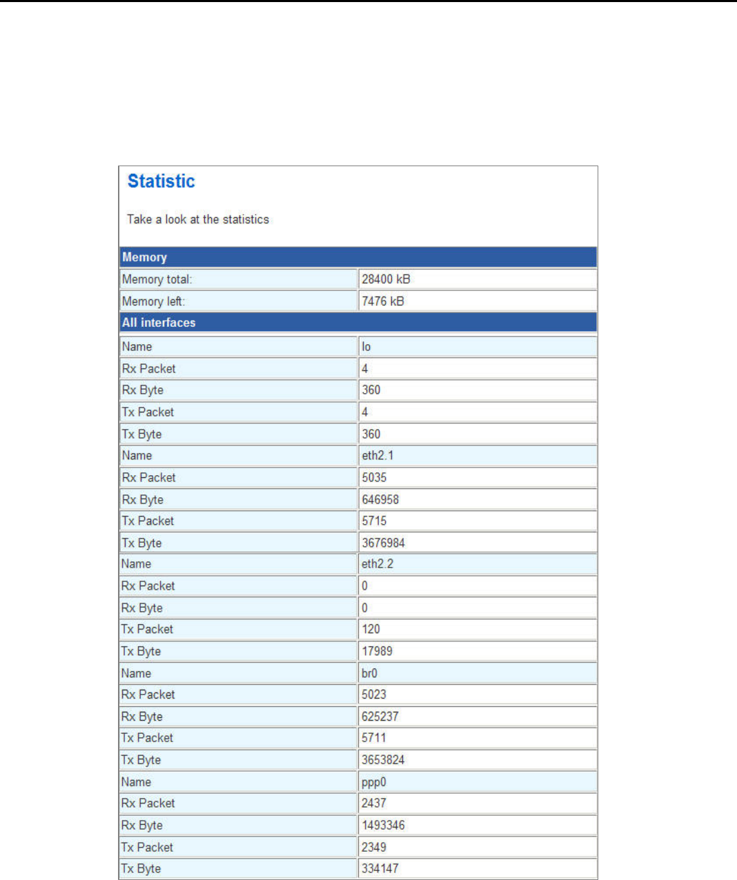 status and all interfaces’ receiving/transmitting packets of this router.