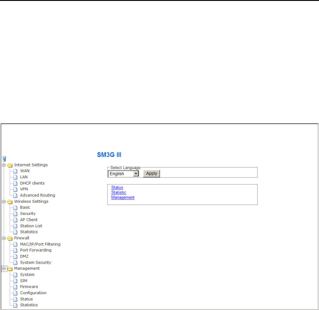 Modem III. The default settings for administrator are as follows: