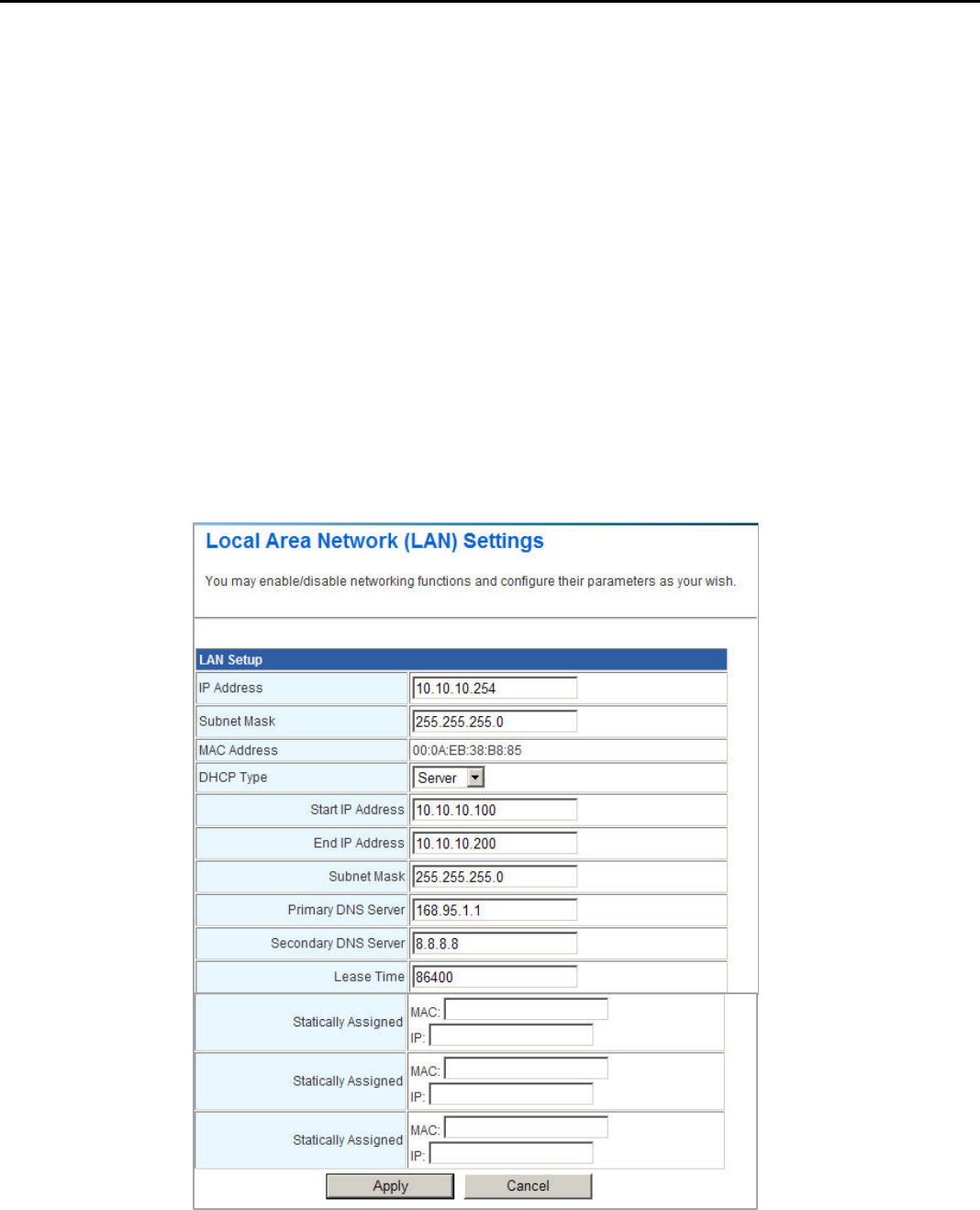 y Use RJ45 interface as the LAN connection.