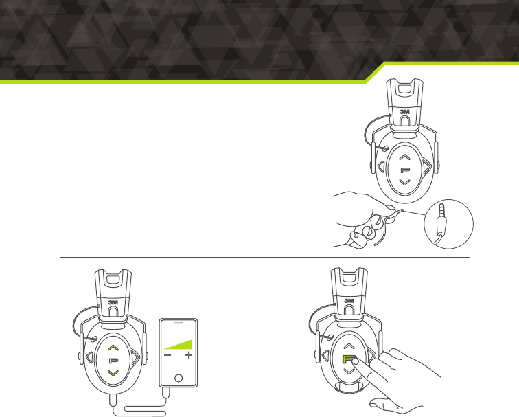connected to a Personal Music Player (PMP). If the hearing protector is connected to a PMP or other