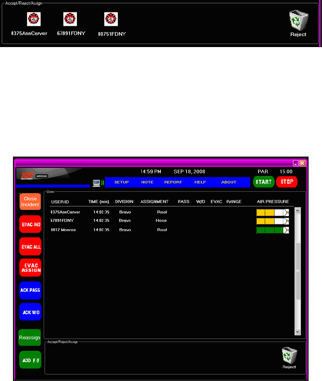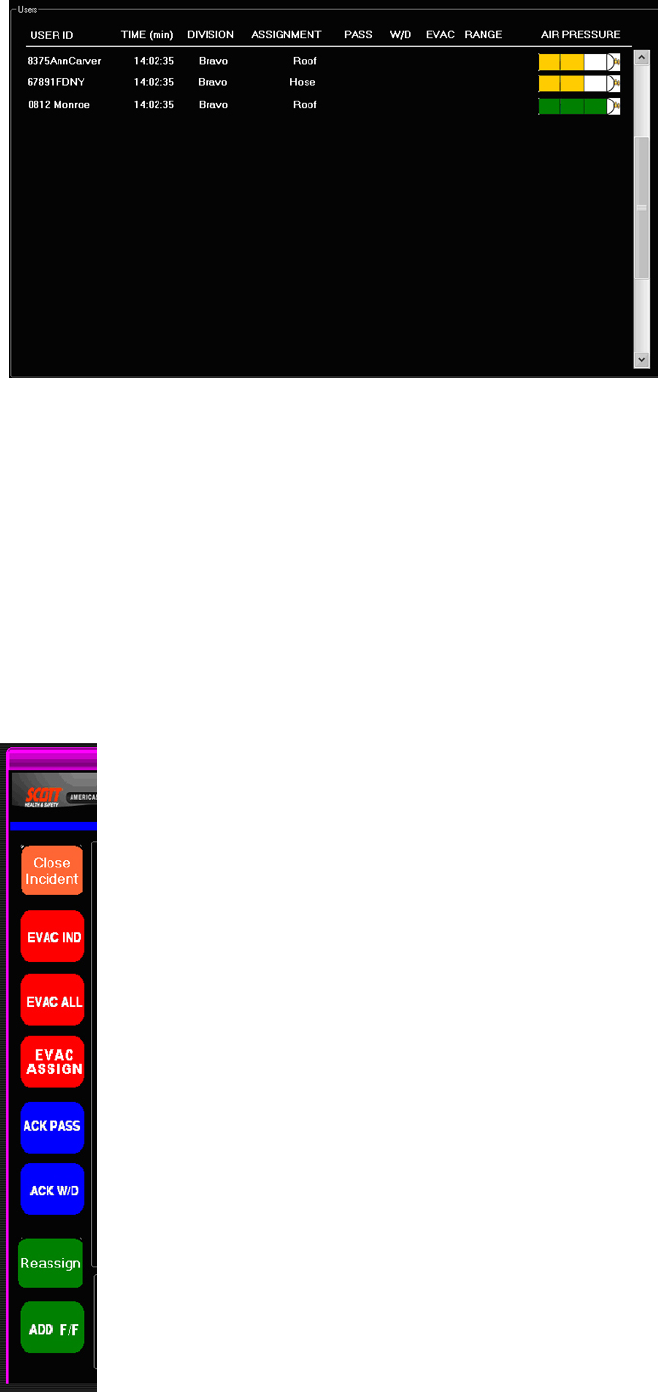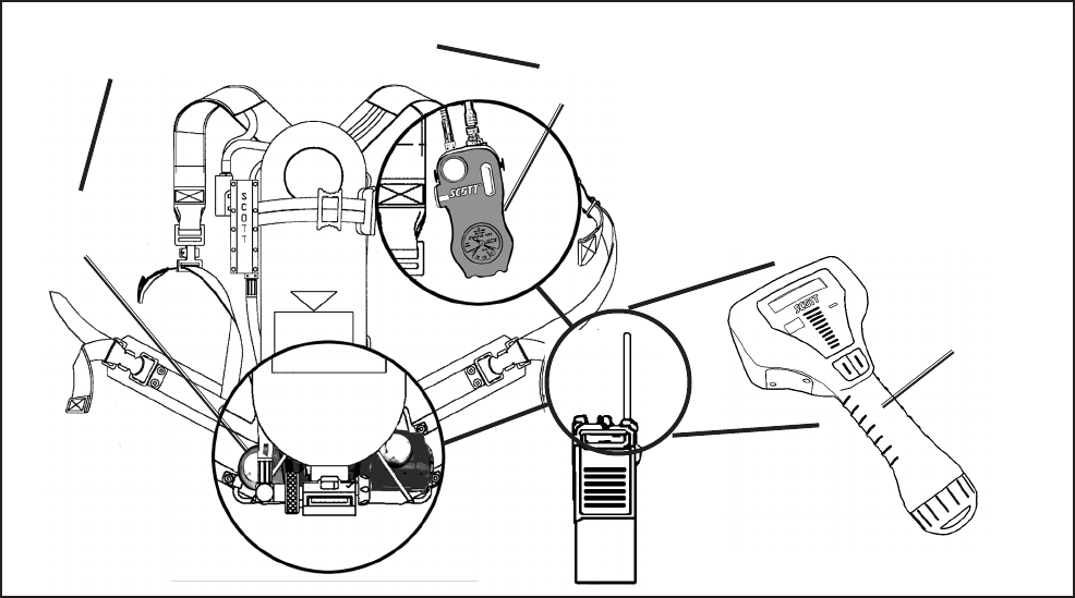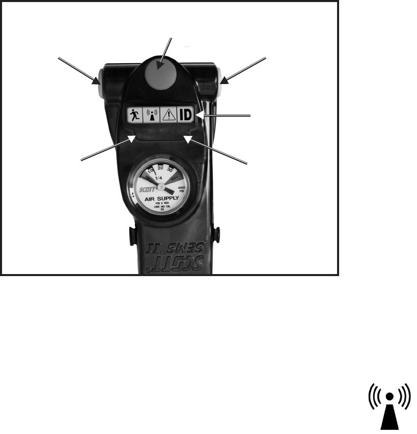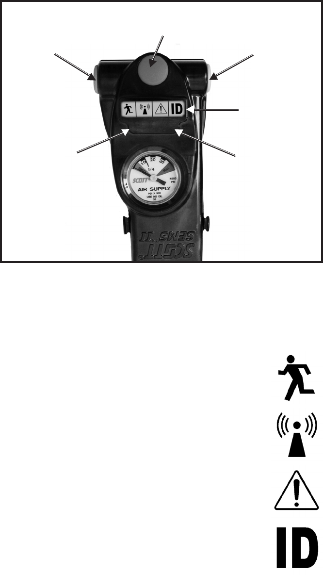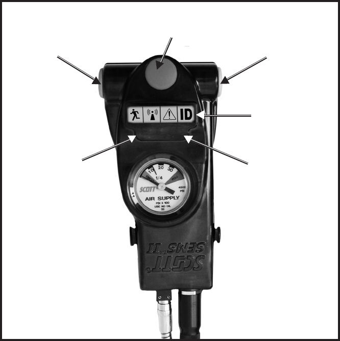 • The SEMS II Personal Alert Safety System (PASS) on the SCBA to