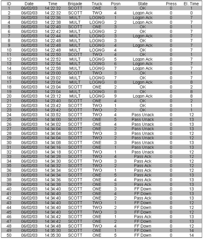 from a SEMS II PDA Portable Unit where the PASS has been acti-