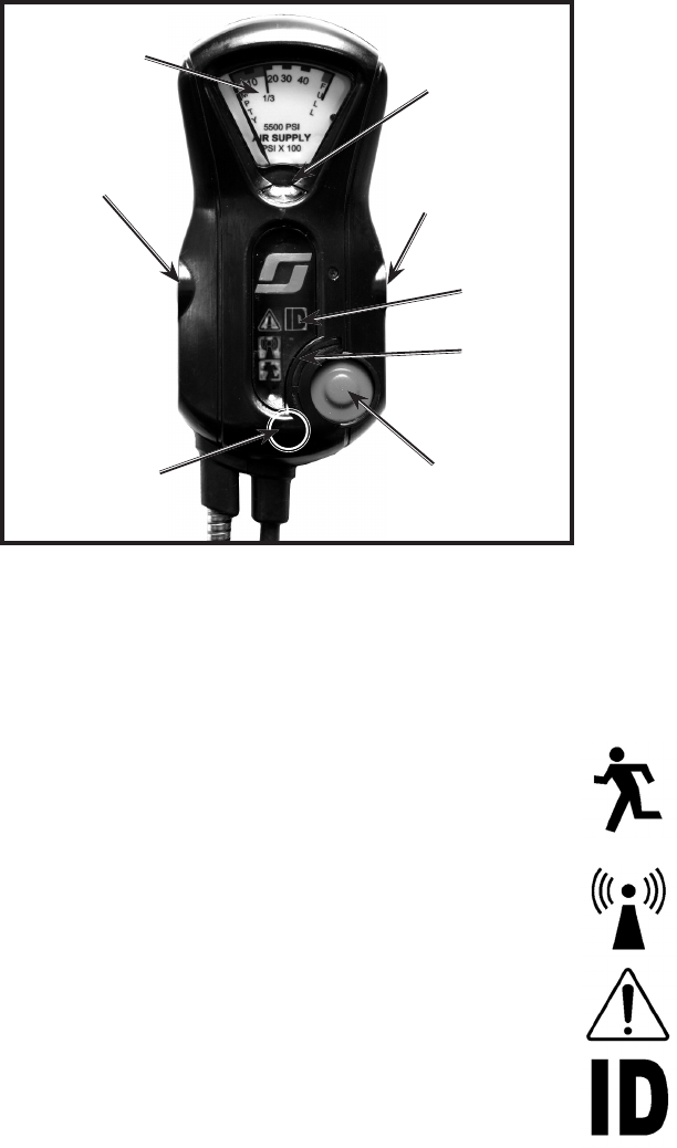 • The Personal Alert Safety System (PASS) on the SCBA to sound a loud alarm