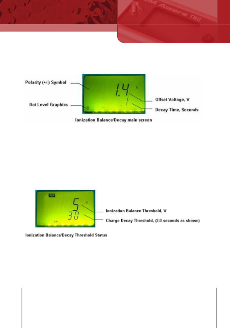 the screen. If the decay exceeds the threshold time, an alarm is heard on the 3M EM Aware TNG