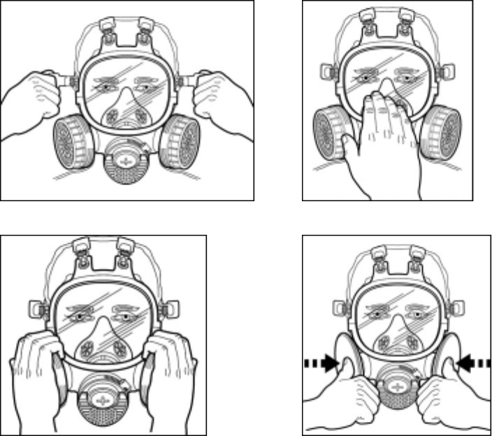 1. Using both hands press or squeeze filter covers toward facepiece and inhale gently. If you feel
