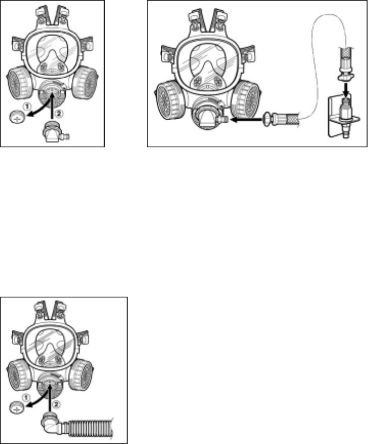to remove. To replace the connector, press the inner section into the facepiece until the end of the threads