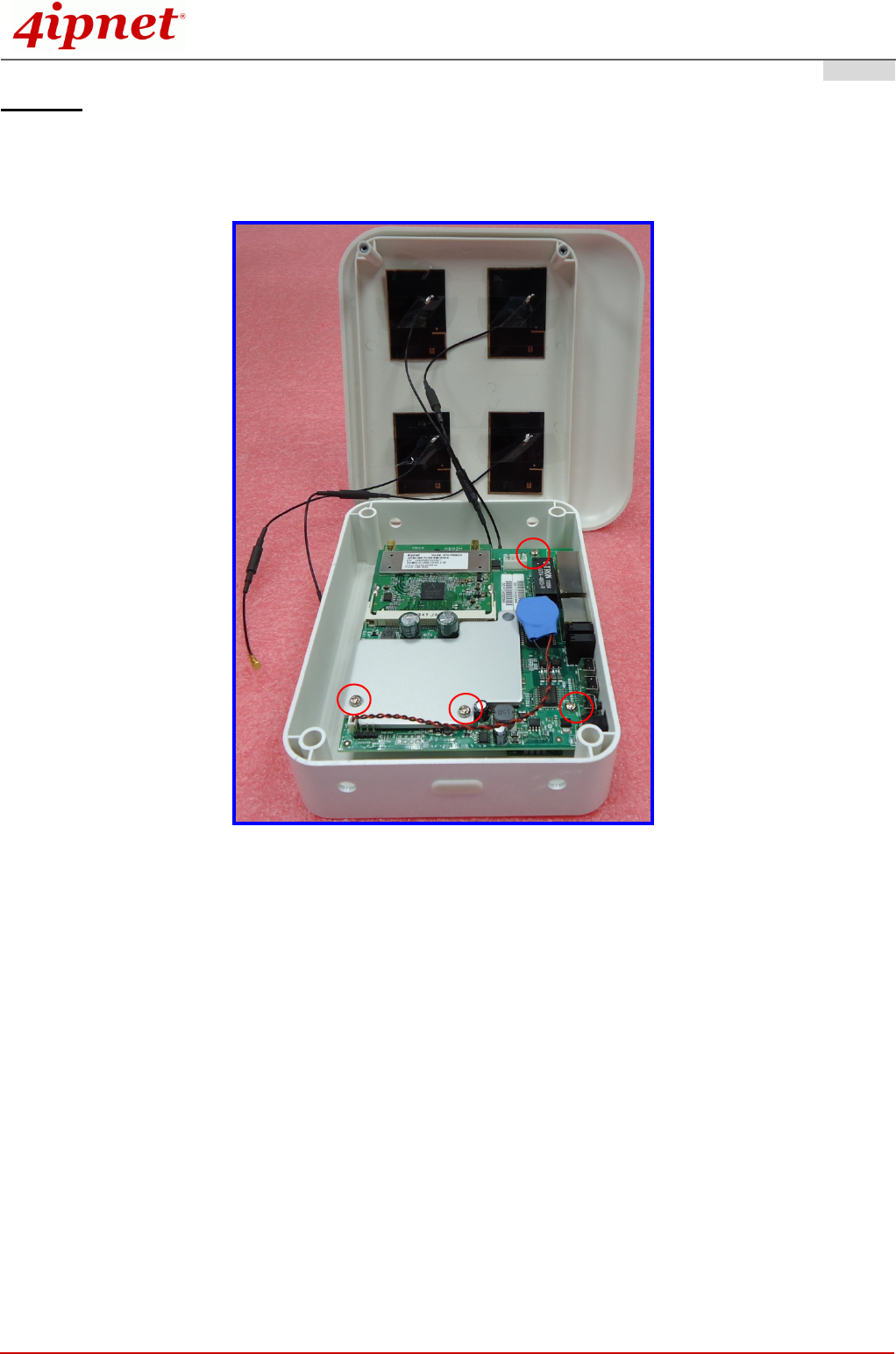 Tighten the 4 screws on PCBA as marked in the stated order. Make sure the RJ45 ports are