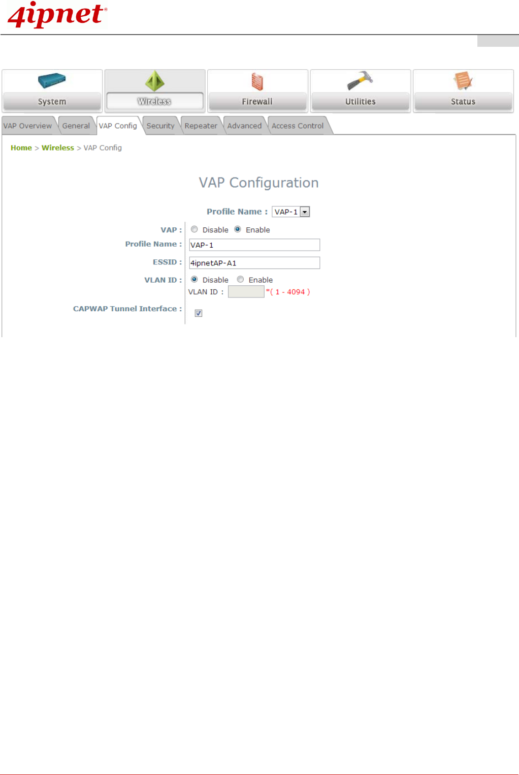 (c) Enable a selected VAP from the drop-down menu of Profile Name and configure related