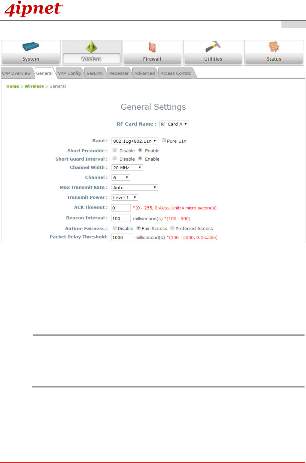 Wireless General Settings Page