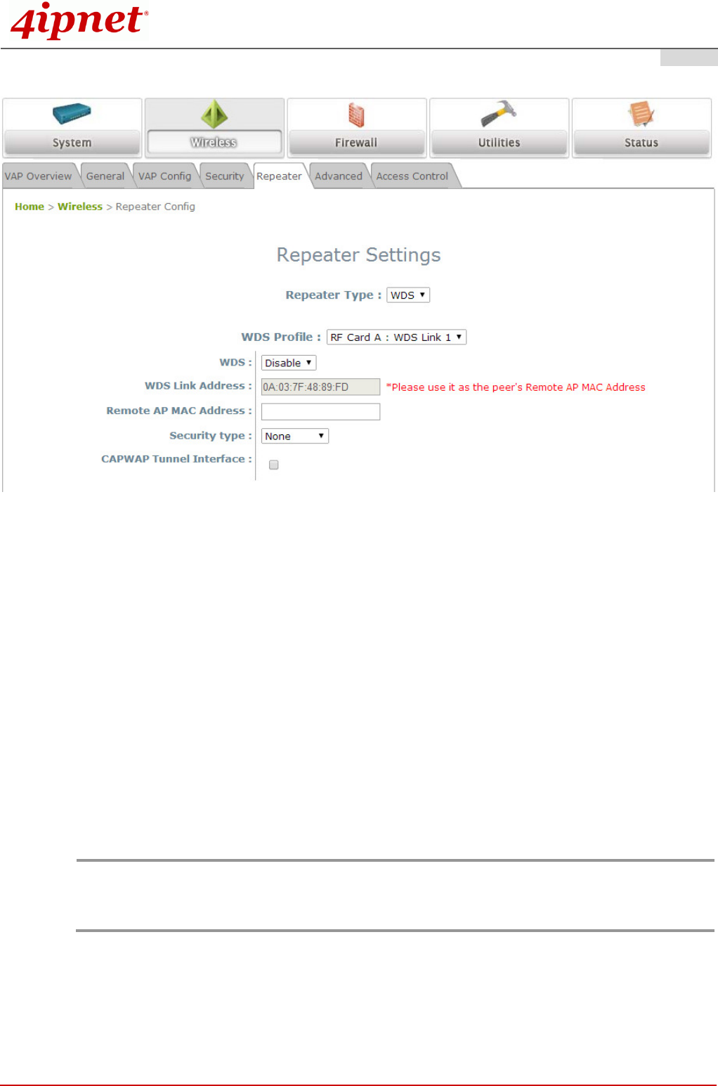 WDS-capable APs (peer APs). By default, all WDS profiles are disabled.