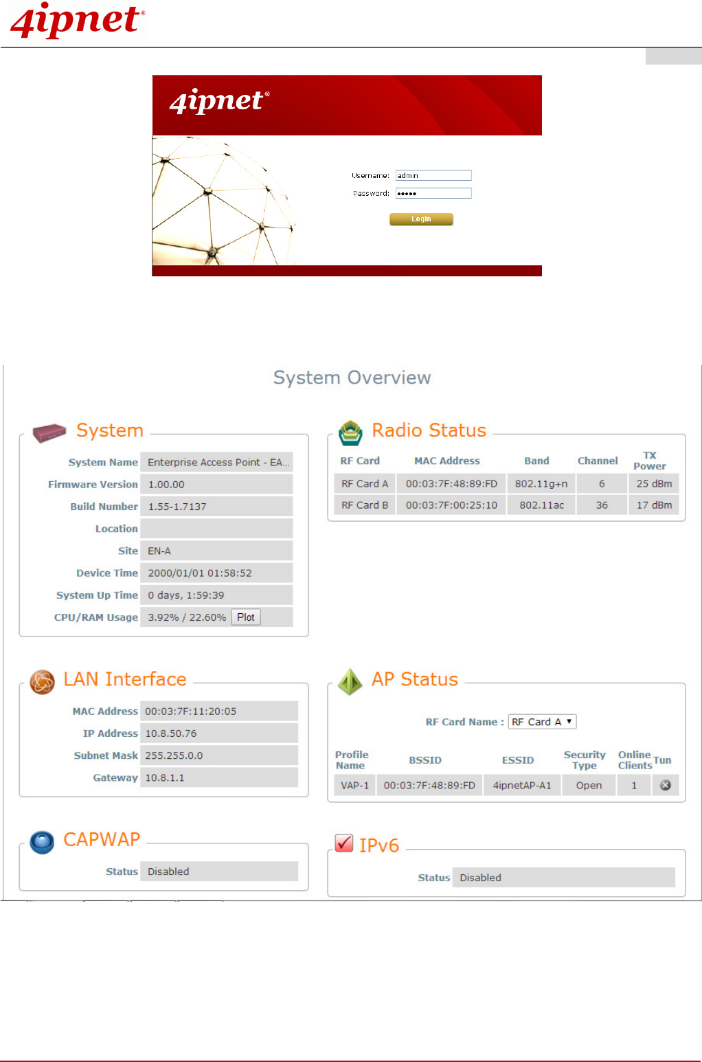 4ipnet EAP760 supports web-based configuration. When hardware installation is complete, EAP760 can be