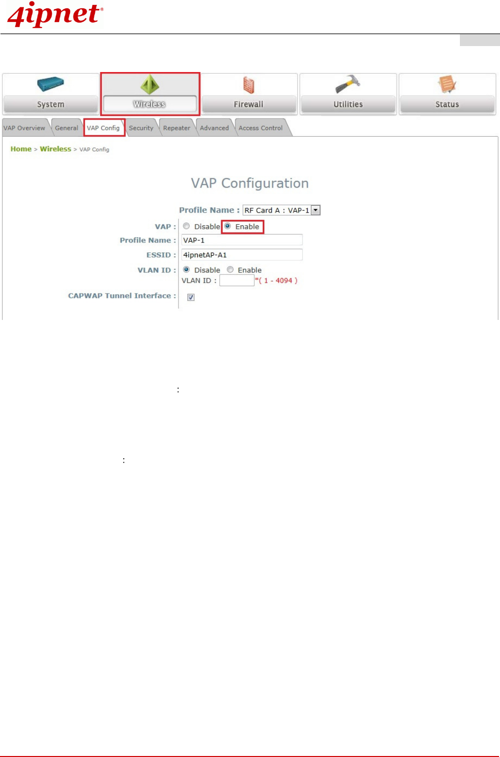 (a) Select the VAP Configuration tab to configure the settings of the desired VAP.