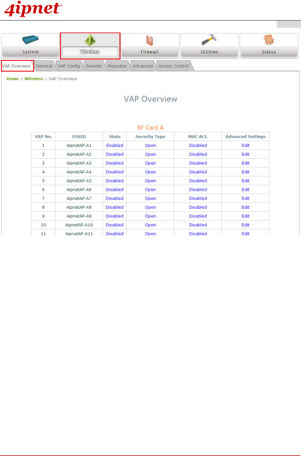 Virtual AP Overview Page