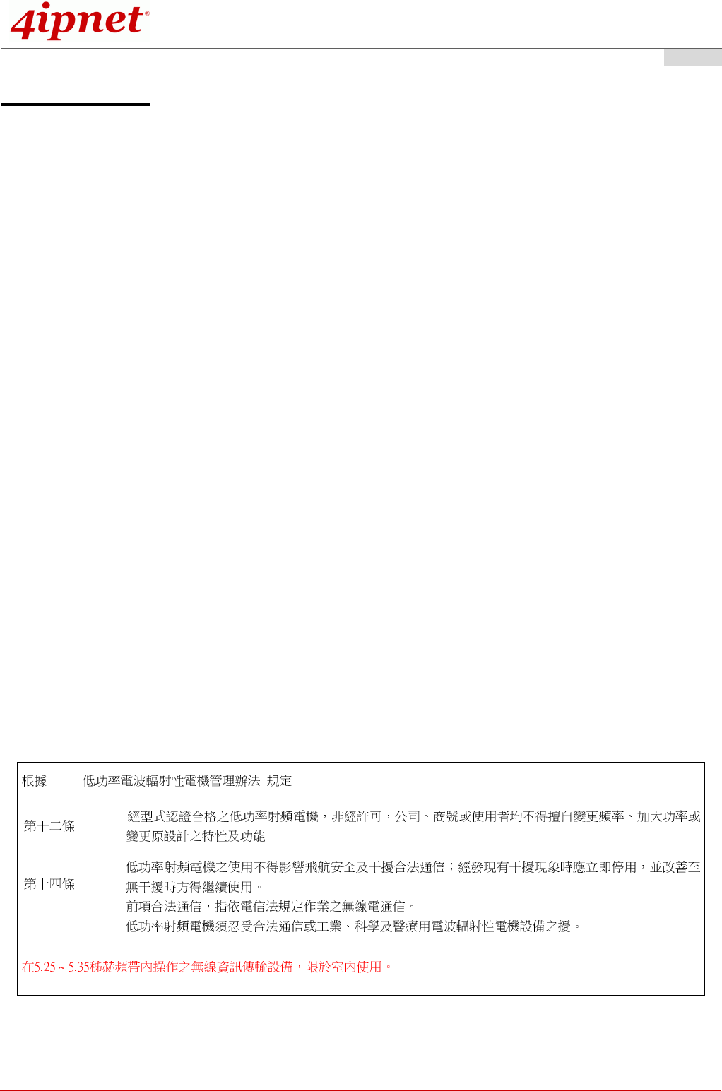 4ipnet Inc. may result in the equipment no longer being compliant with the regulatory requirements.