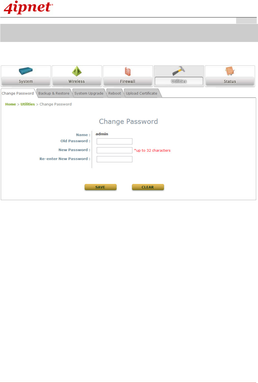 Click on the Utilities icon on the main menu, and select the Change Password tab.
