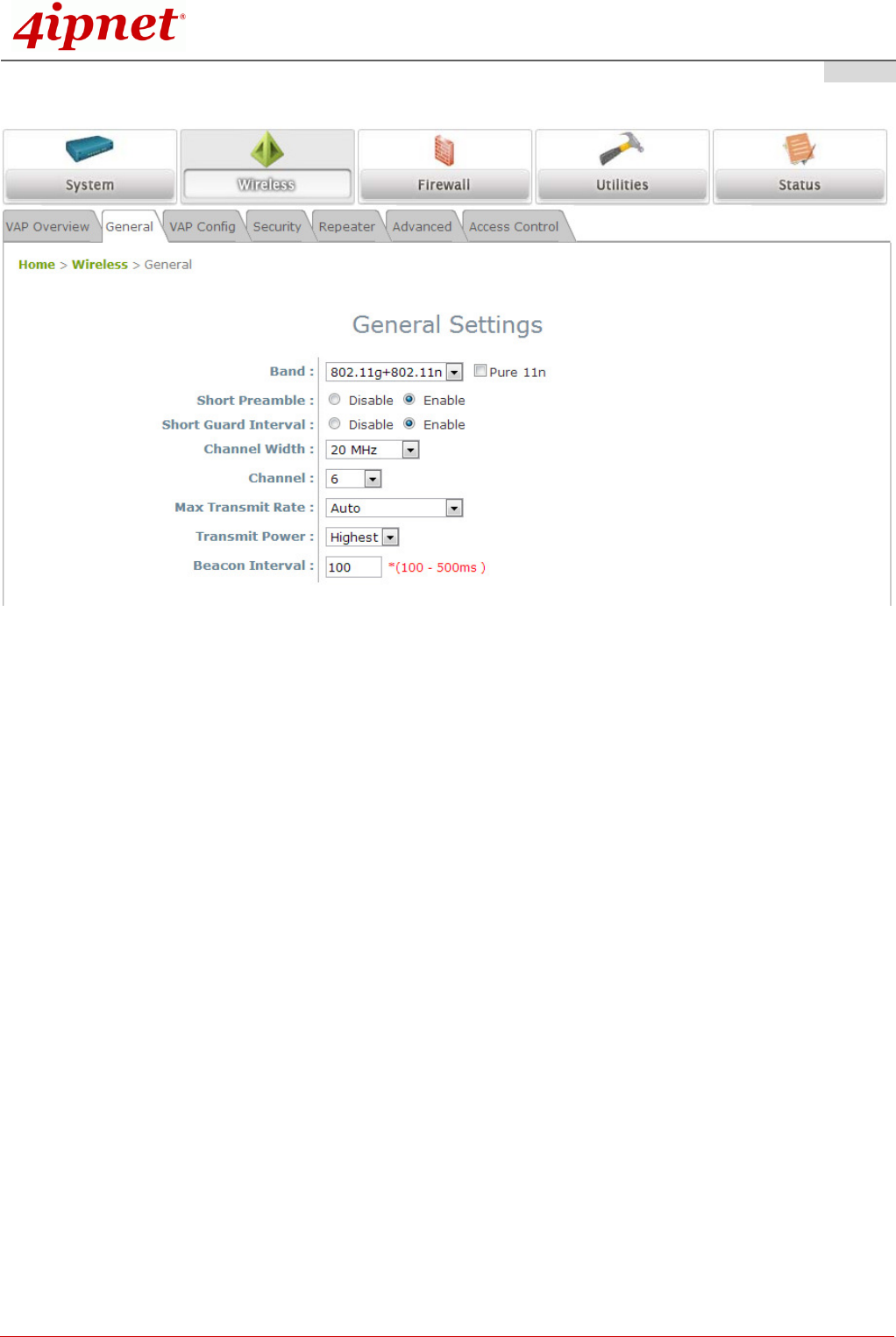 Wireless General Settings Page