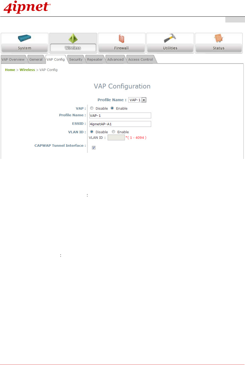 (d) Check “CAPWAP Tunnel Interface” if you would like data of this VAP to go through the