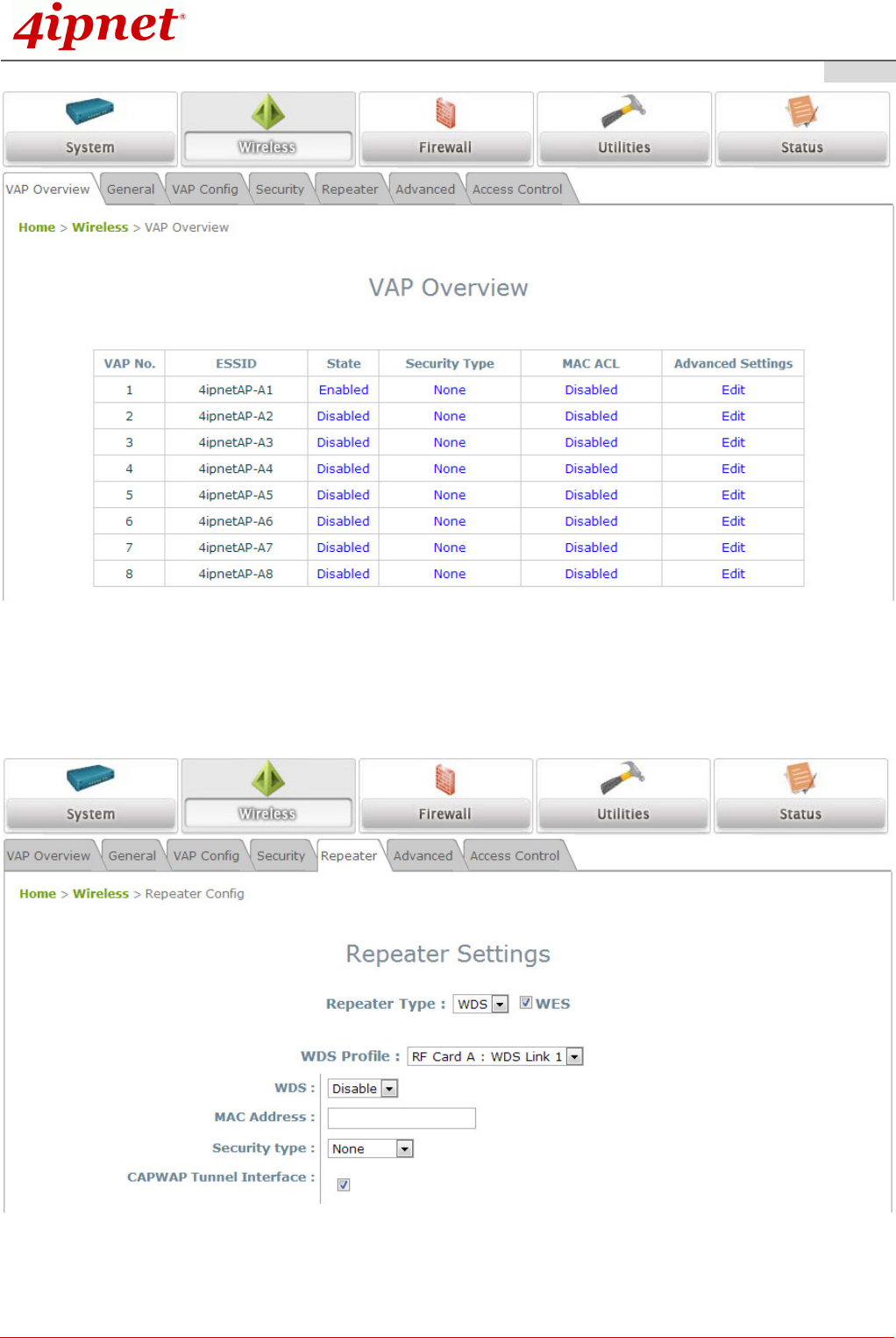 Overview page – at Wireless > VAP Overview.