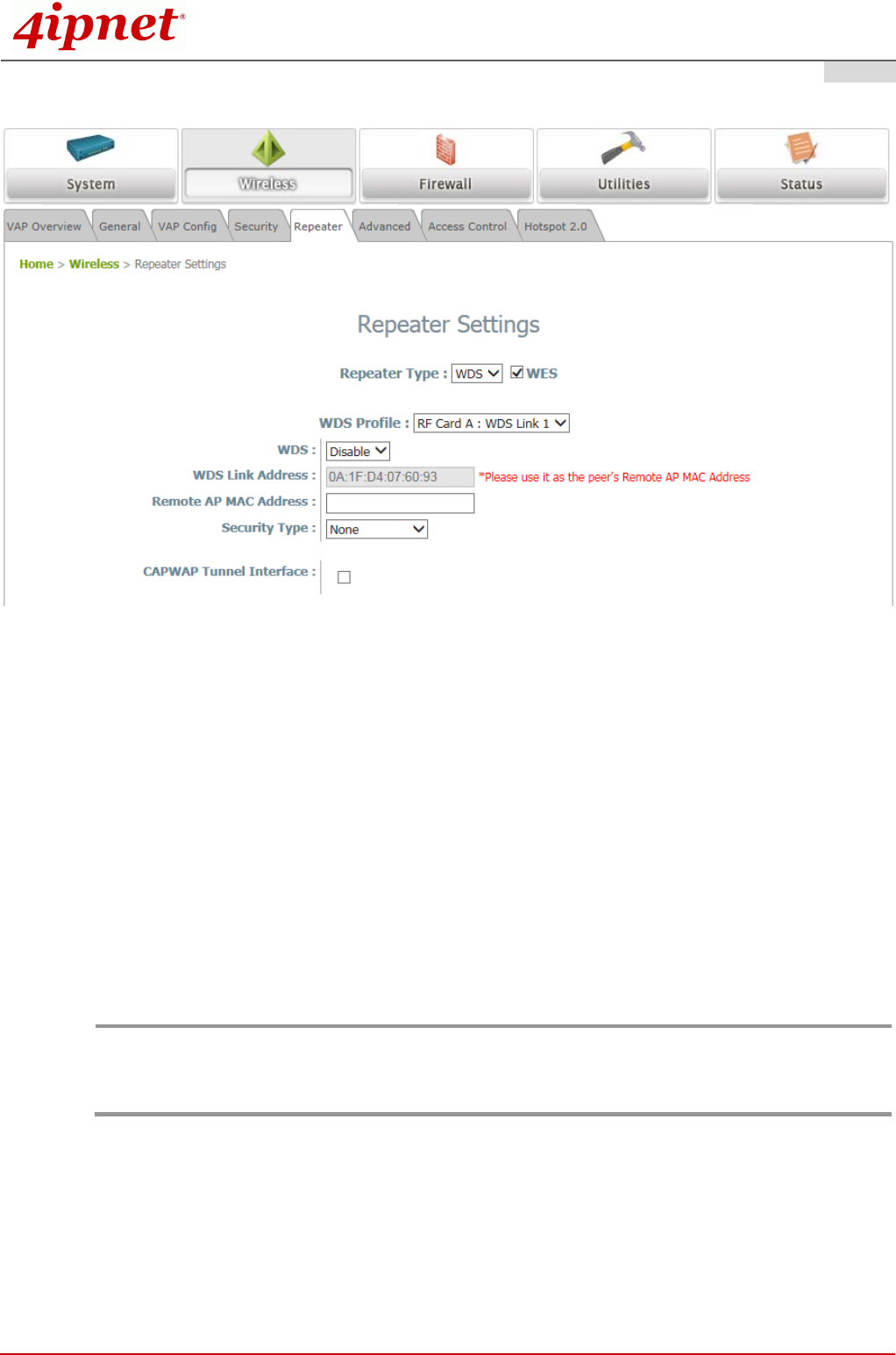to other WDS-capable APs, or peer APs. By default, all WDS profiles are disabled.