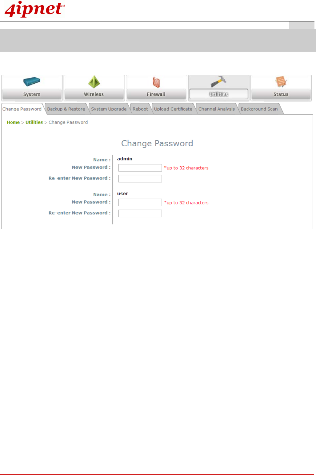 Enter a new password with a length of up to 32 characters, and retype it in the Re-enter New
