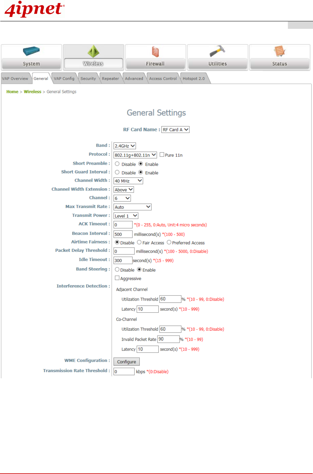 Wireless General Settings Page