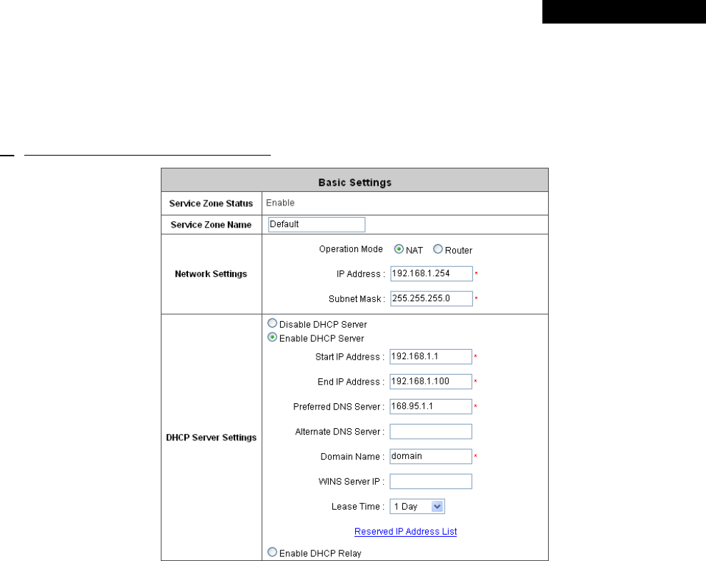 Ø LAN Setting: Click LAN to enter the LAN Setting interface. Input the data of LAN including IP address,