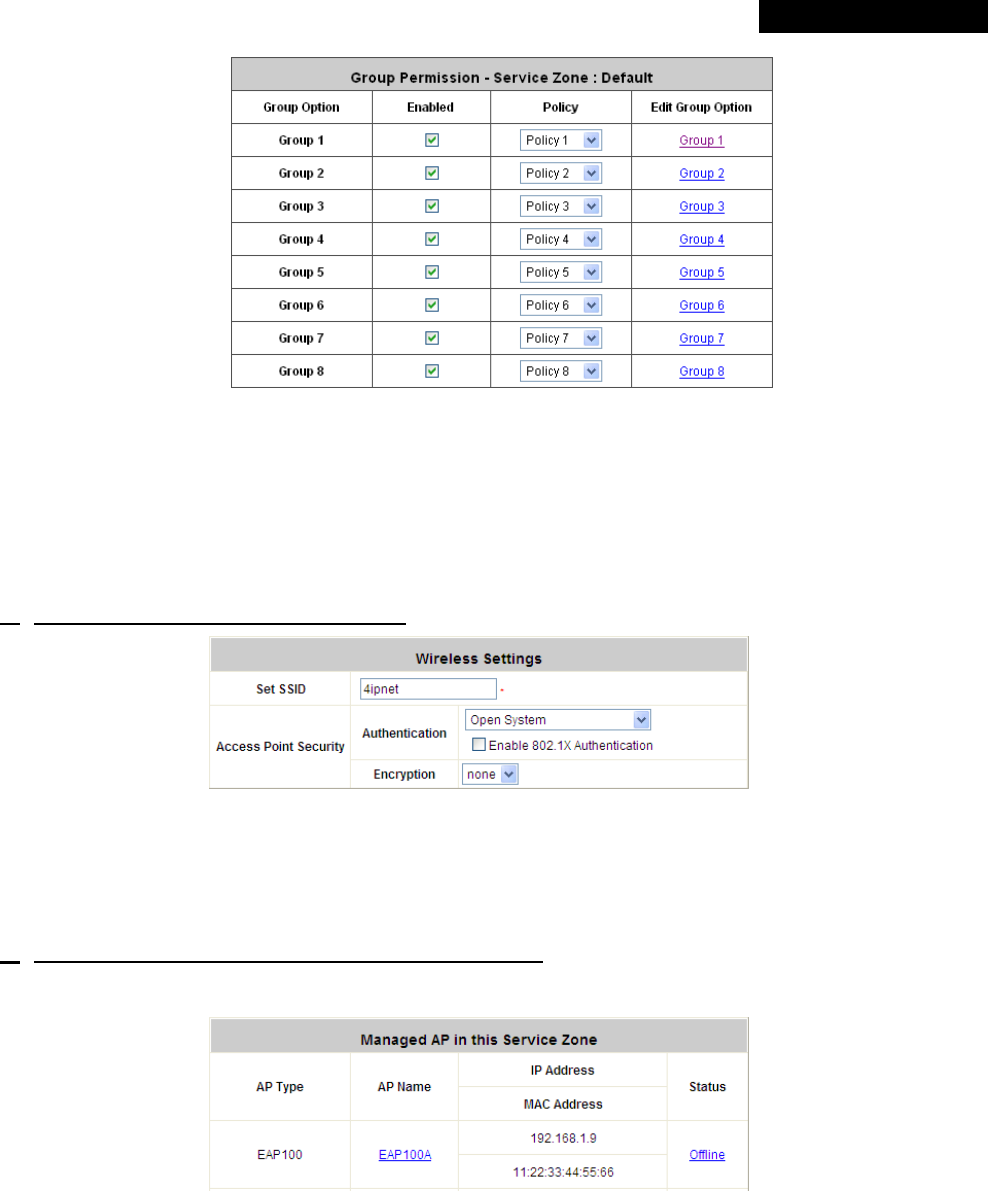 All of the APs under the management of WHG301 will be shown in the list. The AP can be edited by clicking the