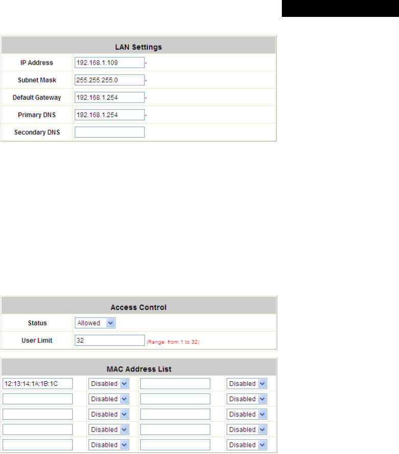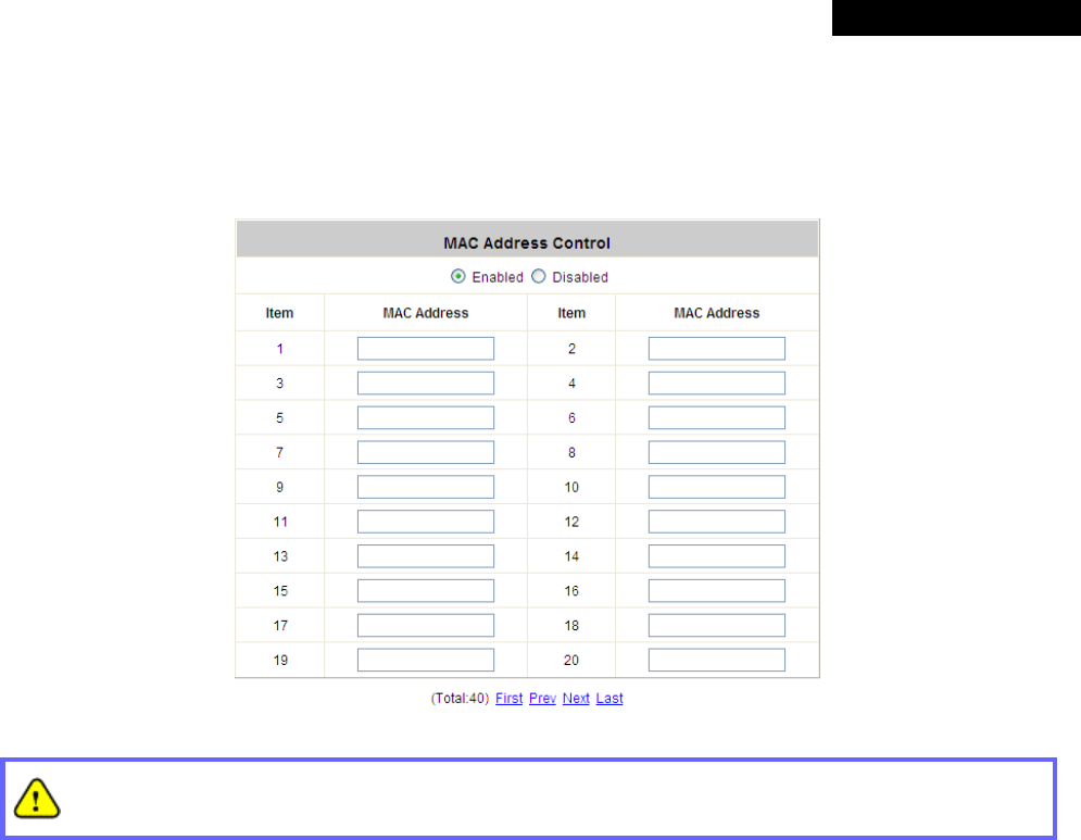 Ø Access Control: In this function, when the status is “Allowed”, only these clients whose MAC addresses
