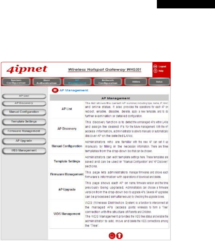 Use this function to detect and manage all of the APs in the network segments. Note that WHG301 can only manage