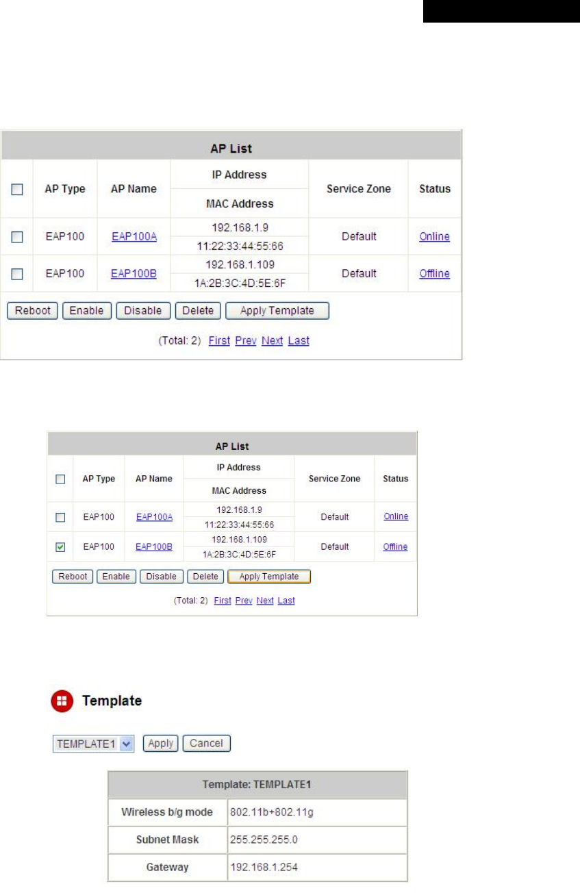 Template is a model that can be copied to every AP and not necessary to configure the AP individually. There are