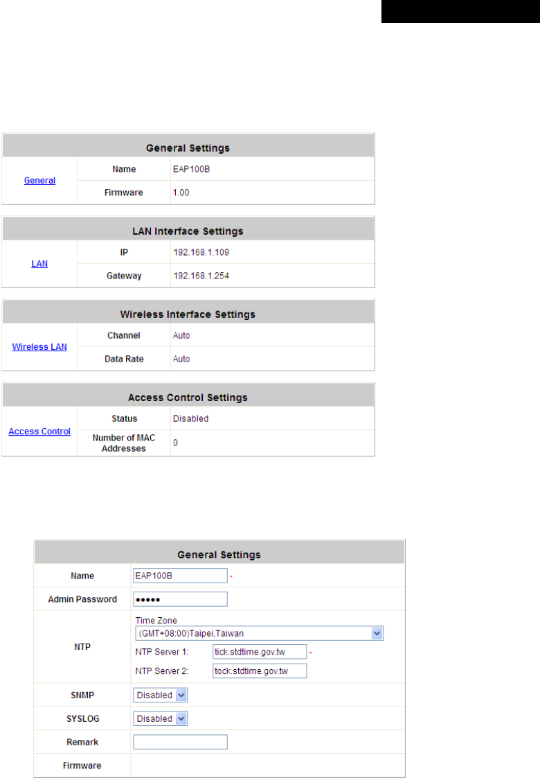 Click AP Name and enter the interface about related settings. There are four kinds of settings, General