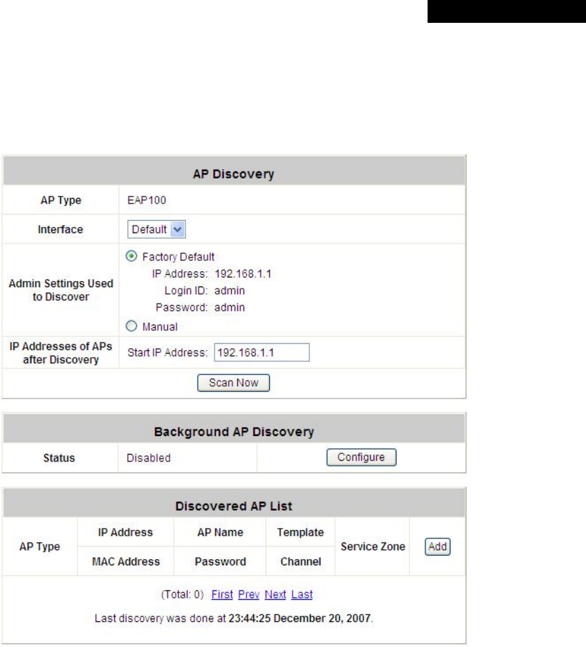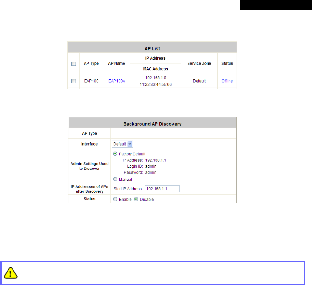 its management list. The administrator must know the local IP addresses of the APs he/she wishes to discover.