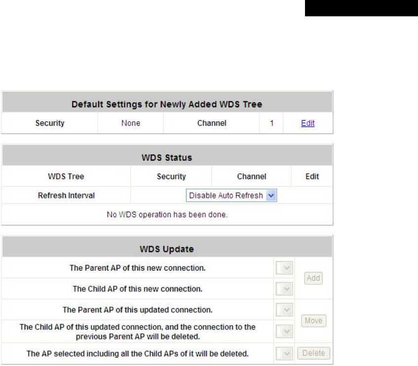 The WDS management function of the system can help administrators to setup a “Tree” structure of WDS network.