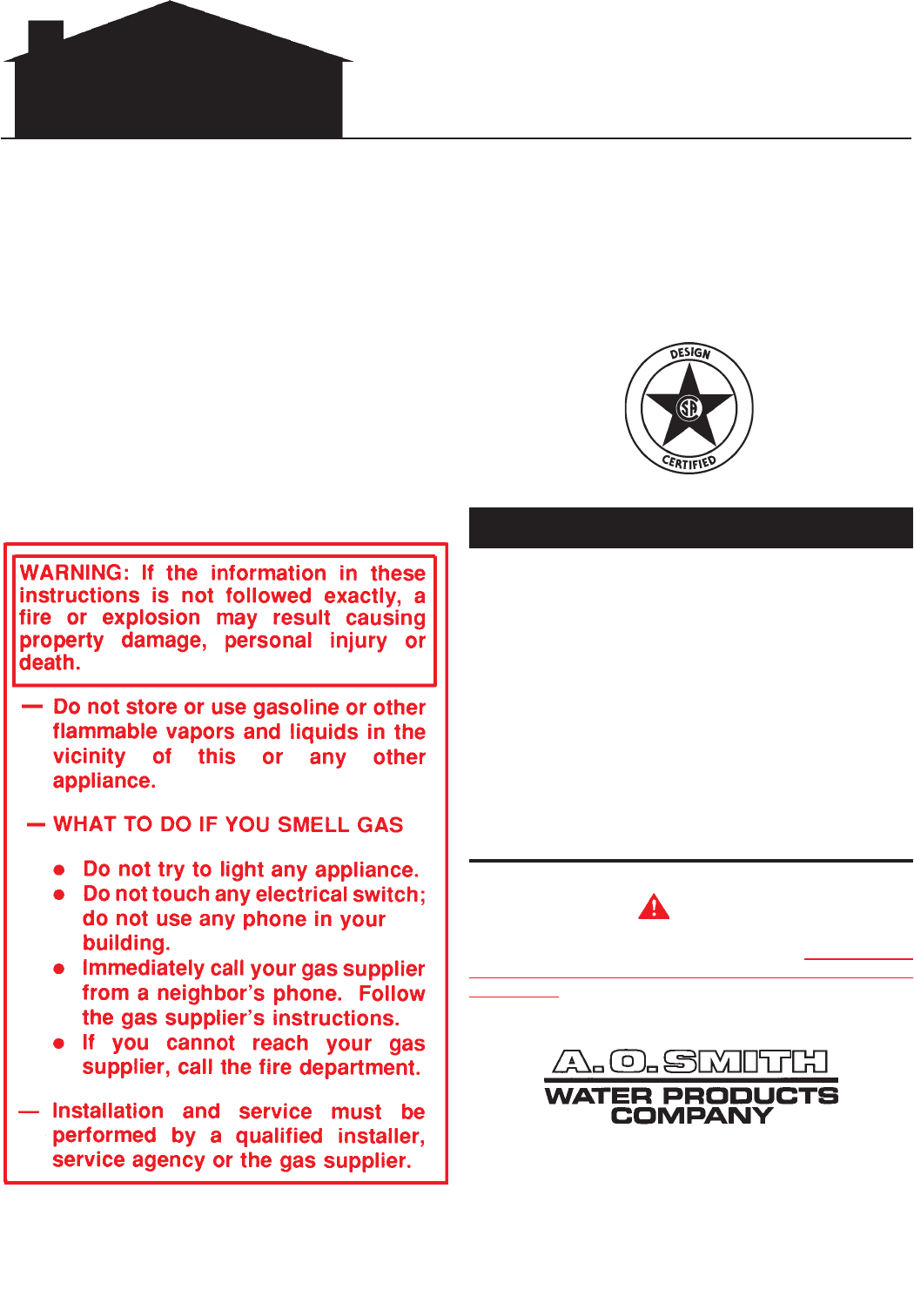 A O Smith Gpcr Owners Manual GPSH Residential Gas 185171 001 0605.p65