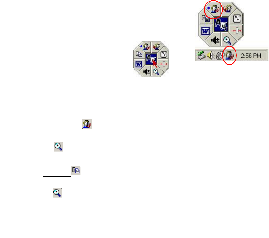 een blauw ruitje totdat u een andere opdracht kiest. Het OfficeJump-menu is te vinden in de taakbalk van Windows (naast de tijd) en