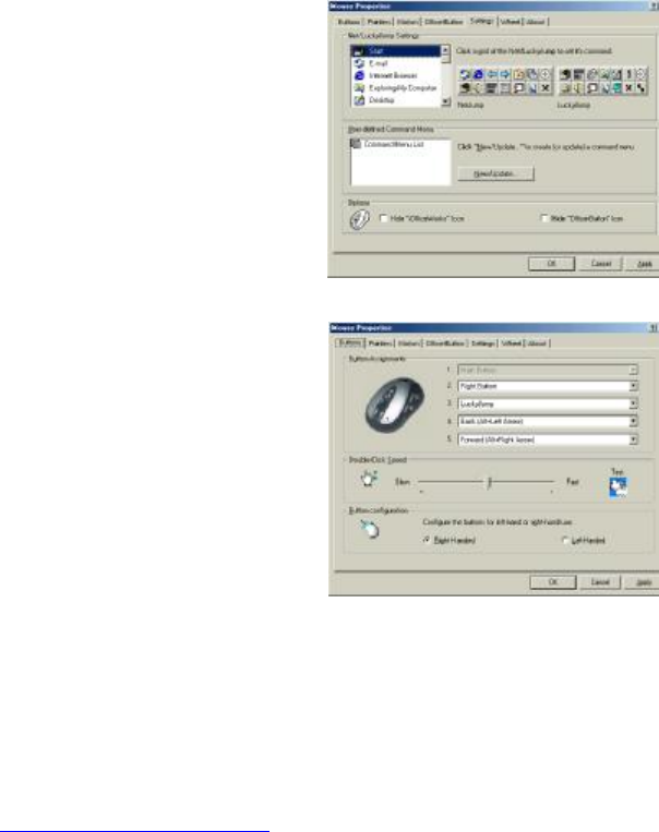 Para utilizar NetJump/LuckyJump, debe abrir la ventana Propiedades de Mouse y seleccionar la ficha Botones. A continuación, asigne