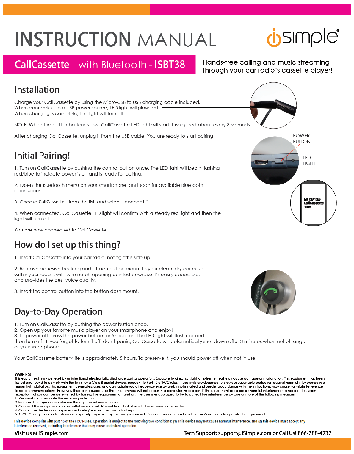 AAMP of Florida AAMP Global ISBT38A Isimple BT Cassette Adapter with Action User Manual C8ABD2B3B4ABD5E6CDBCC6AC