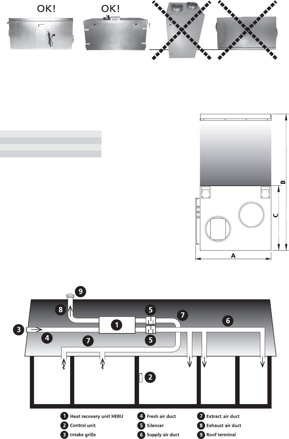 • The HERU S can be mounted in either warm or